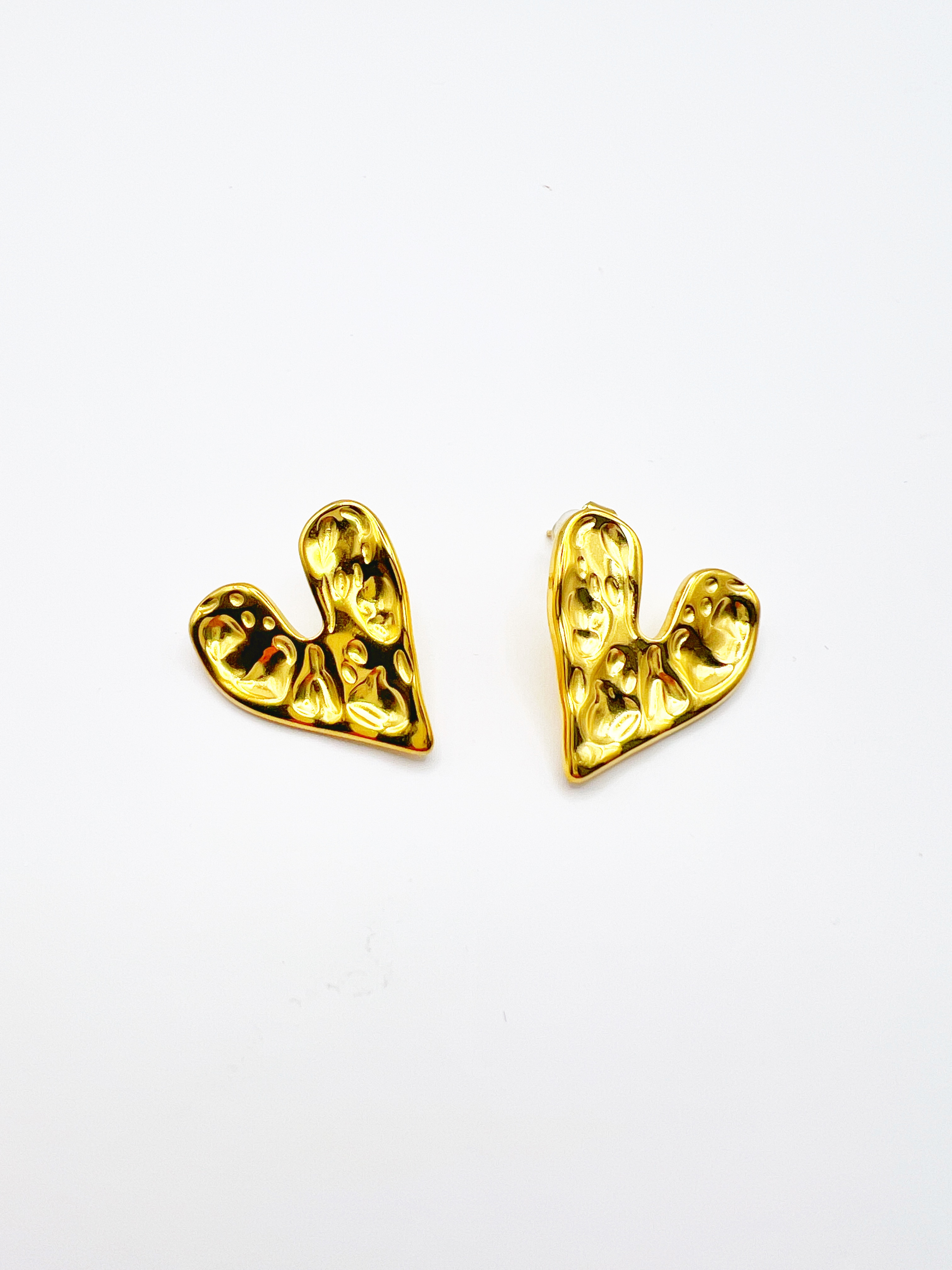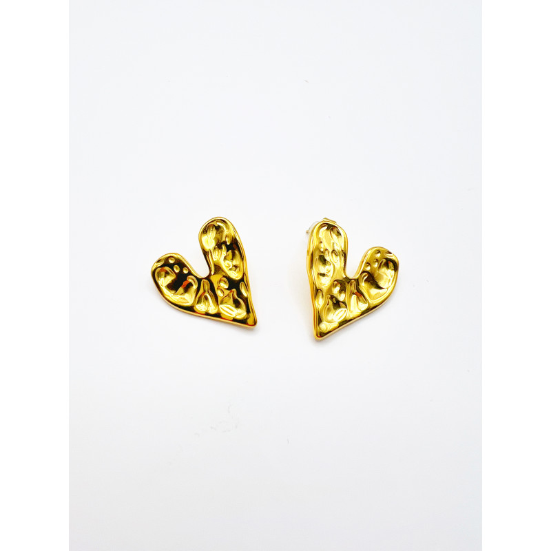 Diese herzförmigen Ohrringe aus goldenem Edelstahl werten Ihr Outfit sofort auf. Sie sind leicht anzuziehen und passen zu jedem Look. Ihr versetzter Stiel (einseitig zum Herzen), mit sicherem Druckknopf, sorgt für perfekten Halt.