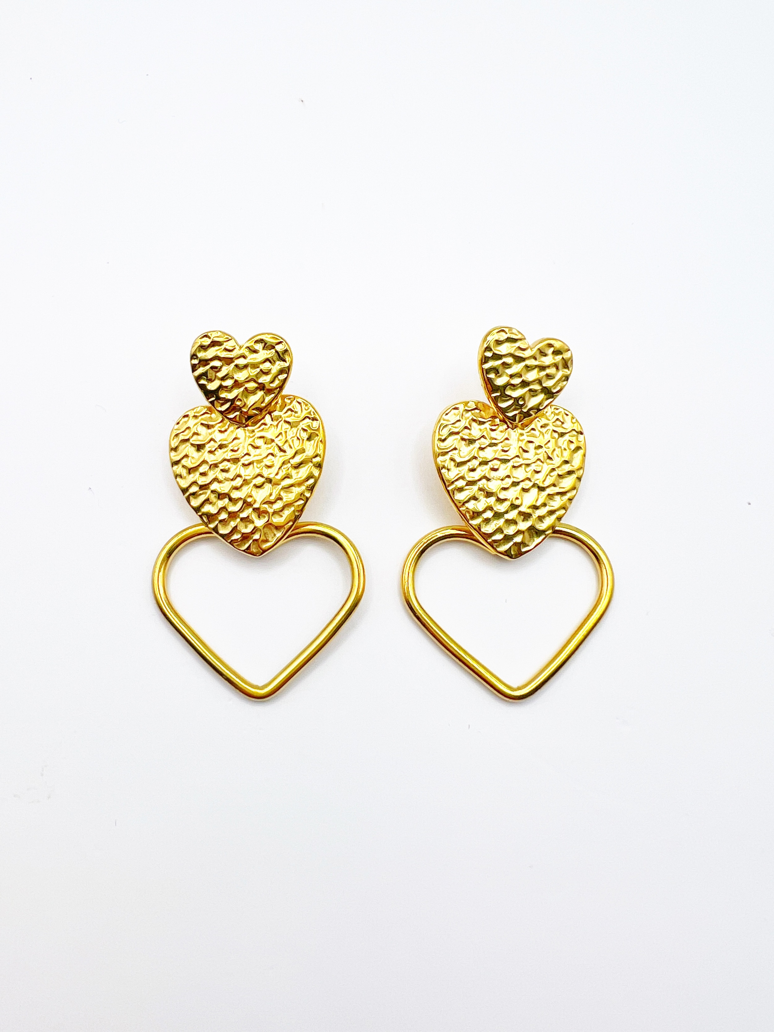 Verleihen Sie Ihrem Stil einen Hauch von Eleganz und Romantik mit diesen atemberaubenden herzförmigen Tropfenohrringen aus goldfarbenem Edelstahl. Ihr raffiniertes und zeitloses Design wird alle Ihre Outfits aufwerten, vom Alltag bis hin zu besonderen Anlässen!