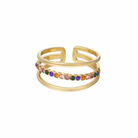 Mit seinen 3 Reihen, von denen eine mit einem Farbstein verziert ist, wird unser Ring aus vergoldetem Edelstahl perfekt sein, um Ihre Hände zu sublimieren.