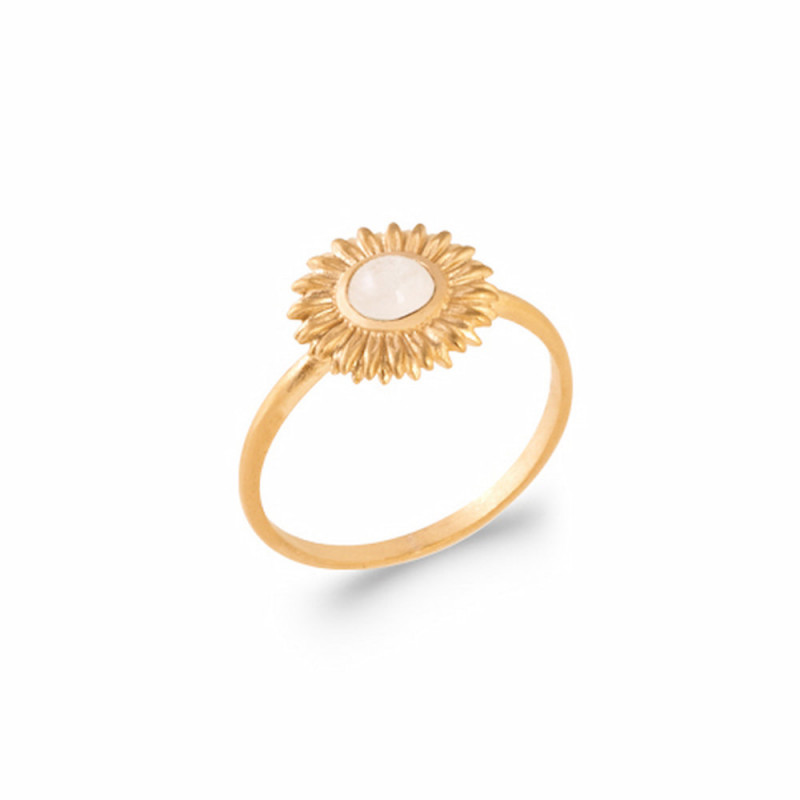 - Schicker und moderner Blumenring mit echtem, natürlichem Mondstein.