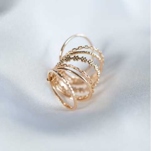 Dieser 18 Karat vergoldete 3 Mikron Ring besteht aus 7 Reihen mit strukturierten Details.