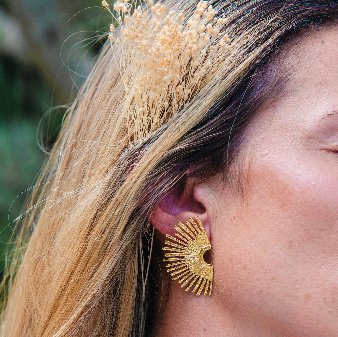 Lightweight and full of character, our golden stainless steel shell flea earrings embody casual elegance.