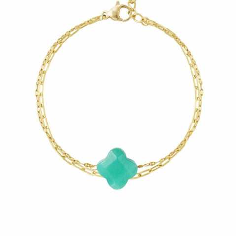 Choose our multi-row bracelet (2 chains) with its natural turquoise stone clover to enhance your wrist.