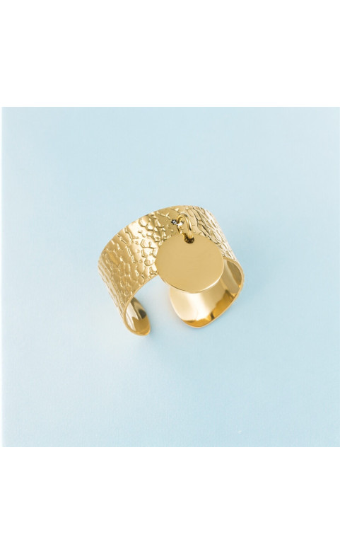 Anillo colgante de acero inoxidable Fabricado en acero inoxidable de alta calidad, el anillo colgante presenta una borla redonda, soldada con seguridad a un anillo con detalles martillados.