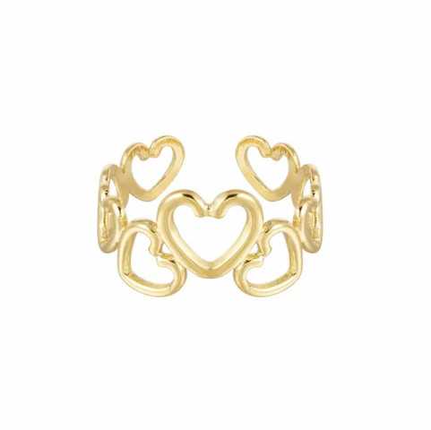 Nuestro anillo adornado con corazones alineados rebosa ternura para embellecer sus conjuntos cotidianos y expresar su amor.