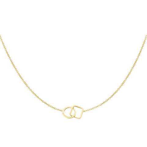 Enamórate de nuestro magnífico collar con su círculo y cuadrado entrelazados en dorado.