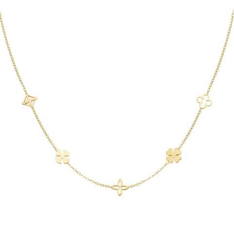 Elija nuestro magnífico collar con sus tréboles dorados de fantasía.