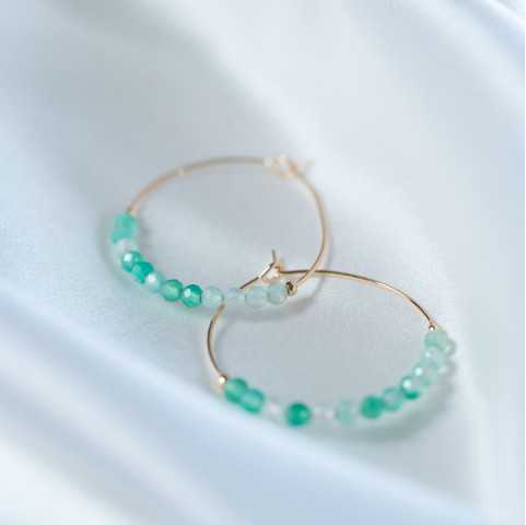 Pendientes (Aro) Piedra Verde Calcedonia oro