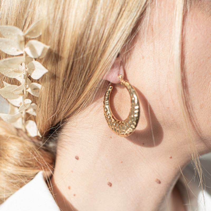 Nerina Bijoux seleziona orecchini placcati oro 18 carati da 3 a 5 micron per un look chic e delicato. Troverete la vostra felicità tra i diversi modelli dorati che abbiamo scelto: chips, ganci, pendenti, creole e molti altri. Gli orecchini mettono in risalto il vostro viso e il vostro abbigliamento. Sentitevi liberi di variare i piaceri utilizzando una moltitudine di stili e forme diverse. Sottili o più grandi, potete optare per orecchini più tradizionali o per autentici orecchini con pietre preziose incastonate. I colori delle pietre preziose abbinate all'oro donano luce al viso, mentre gli orecchini a cerchio o pendenti abbelliscono il vostro look.