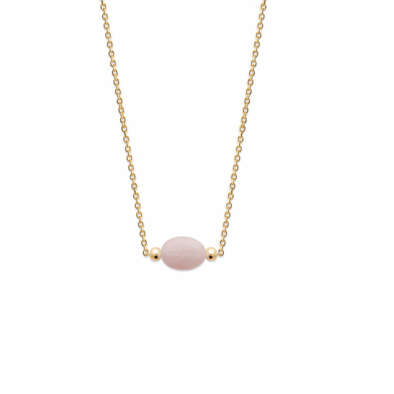 Collana placcata oro con vera pietra di quarzo rosa