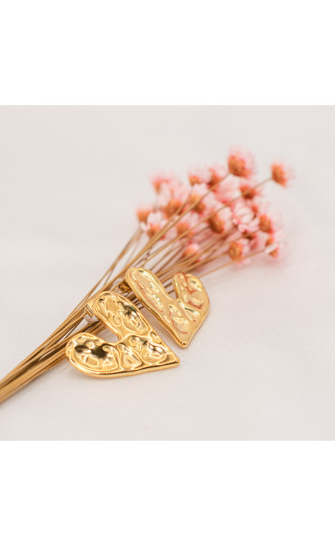 Orecchini a cuore in oro martellato